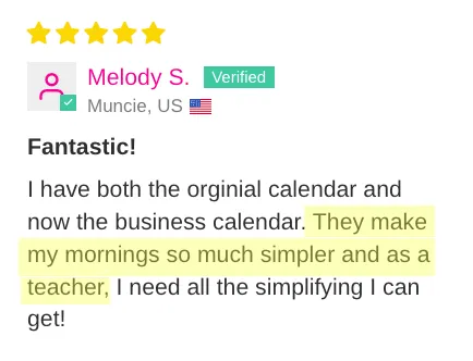 I have both the orginial calendar and now the business calendar. They make my mornings so much simpler and as a teacher, I need all the simplifying I can get!
